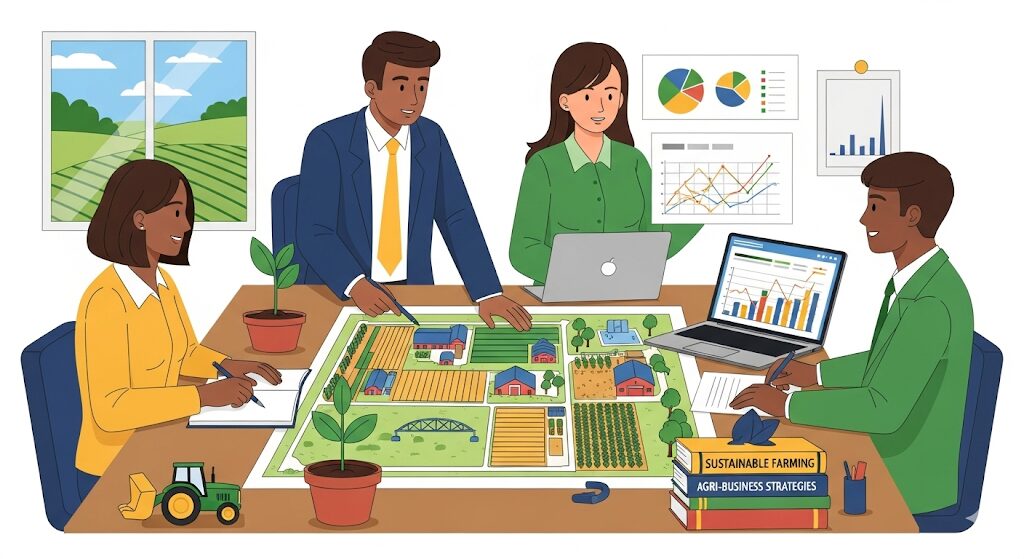 次に、机上調査と現地調査を徹底的に行います。どの作物に需要があるかといった市場分析、参入候補地の気候や物流網、自治体の支援制度などを分析する地域分析が重要です。特に、実際に現地を訪れ、自分の目で見て、地域の人と話をすることが欠かせません。